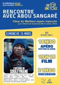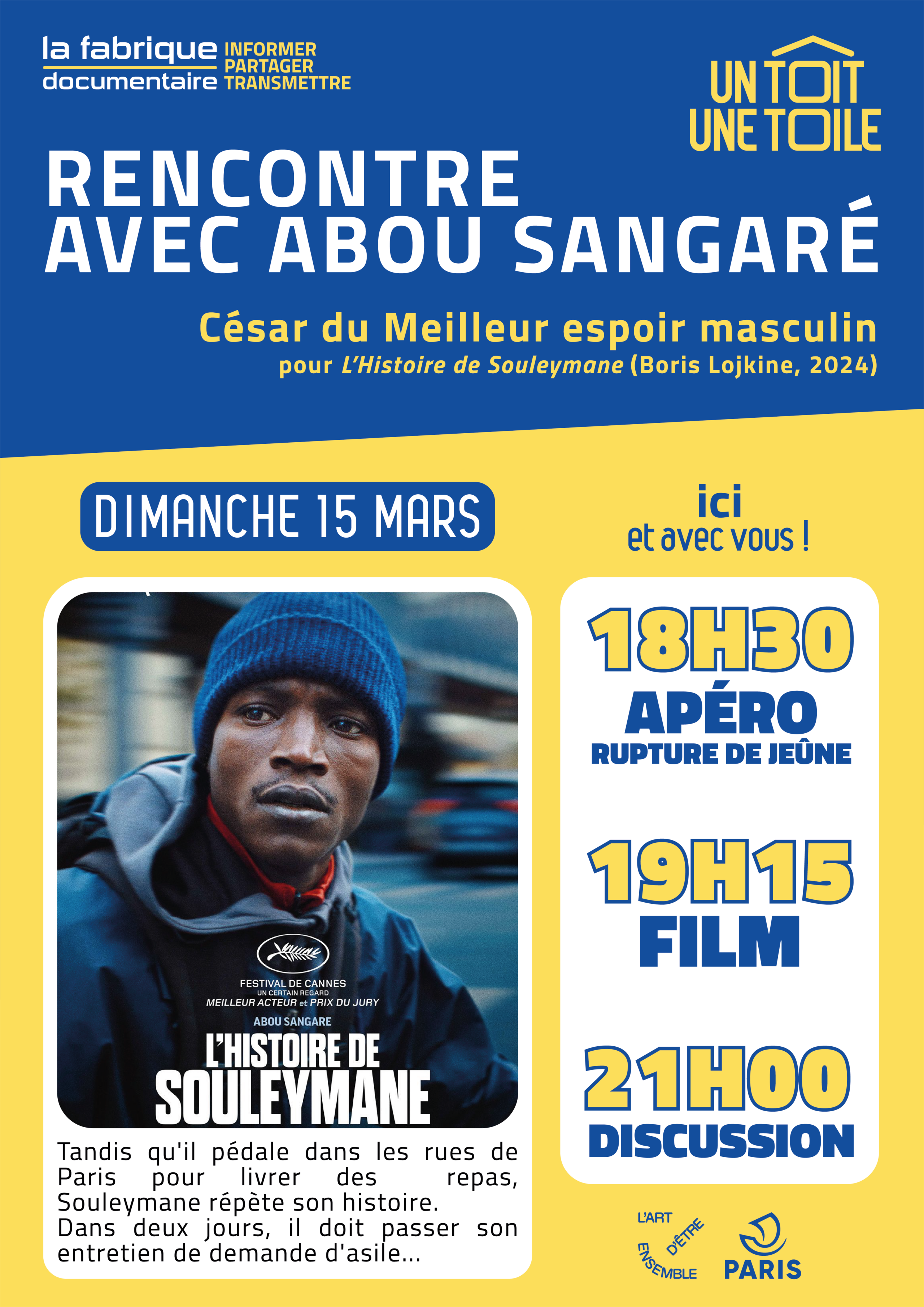 â le 15 mars 2026, soirĂ©e CĂ©sars : projection de « L’Histoire de Souleymane » (Boris Lojkine, 2024) en prĂ©sence de son acteur principal Abou SangarĂ©, CĂ©sar 2025 de la Meilleure RĂ©vĂ©lation Masculine. La sĂ©ance Ă©tait ouverte Ă un public limitĂ©, sur invitation.
